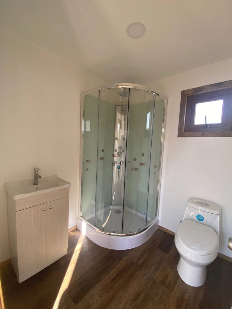 1 Baño completo / lavamanos, wc, shower door 80x80mt