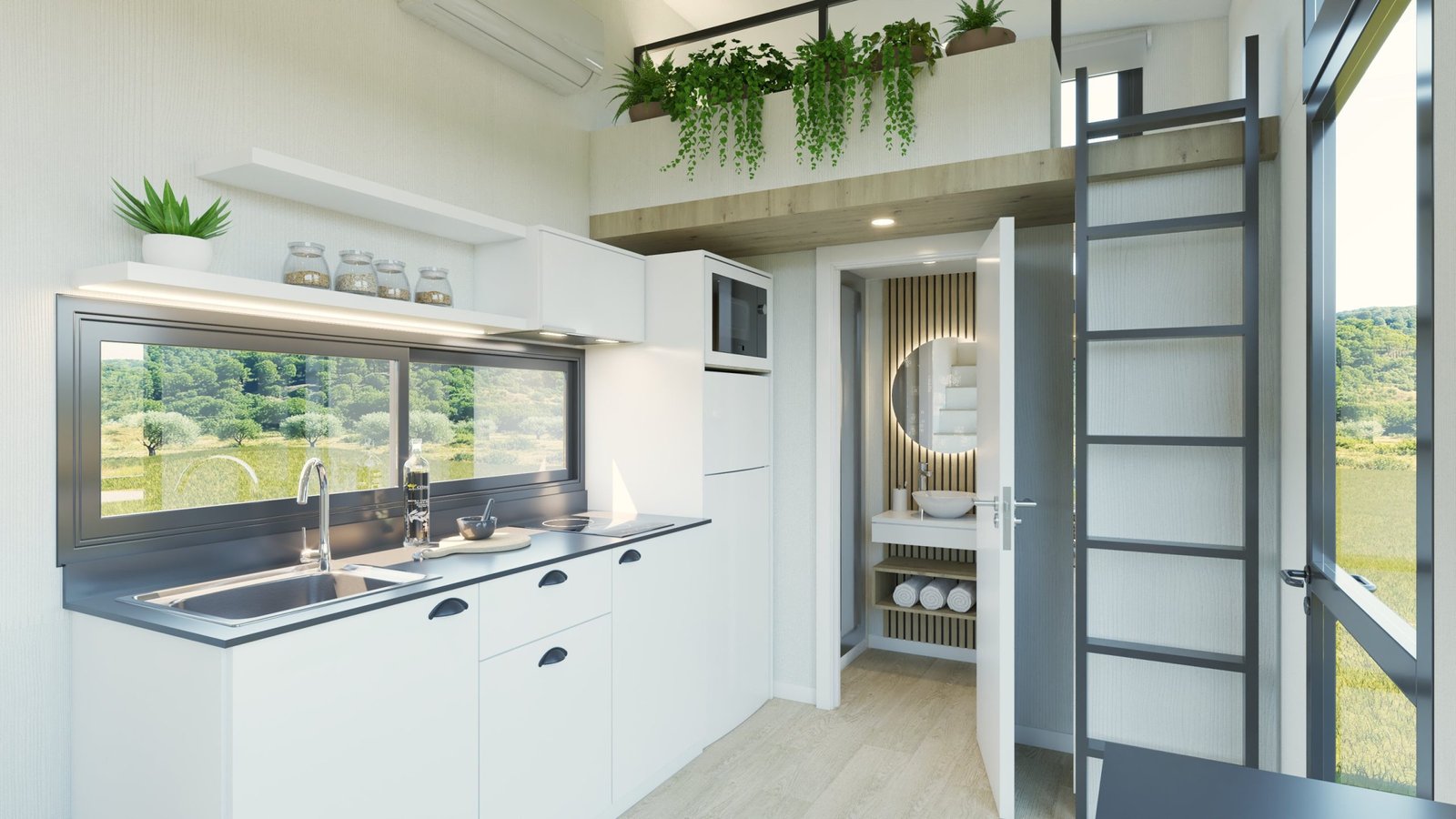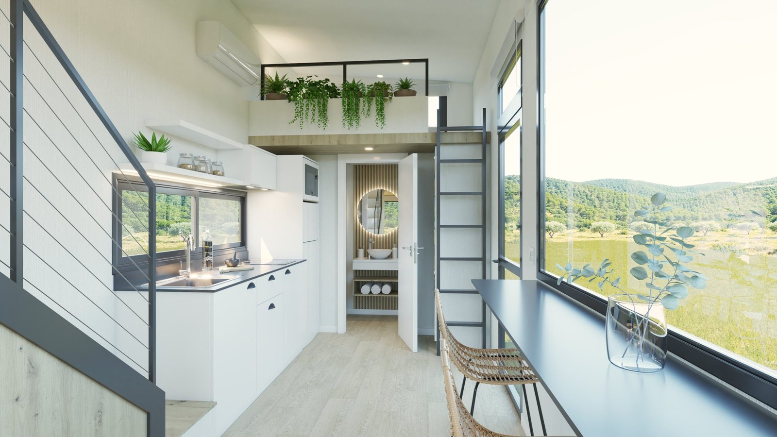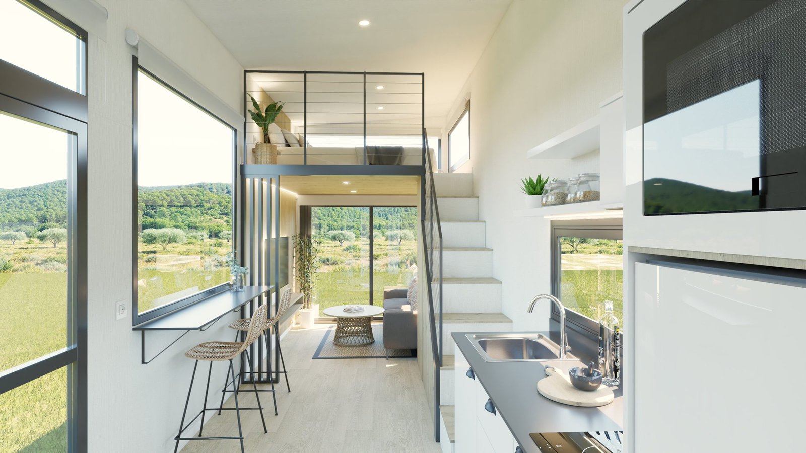 La Tiny Home LIMO es una casa móvil de pequeñas dimensiones diseñada para maximizar el confort, la luminosidad y la funcionalidad en espacios reducidos. Con un estilo minimalista y contemporáneo, esta tiny house moderna combina líneas limpias, materiales de alta calidad y una paleta cromática neutra que potencia la luz natural y genera una agradable sensación de amplitud.