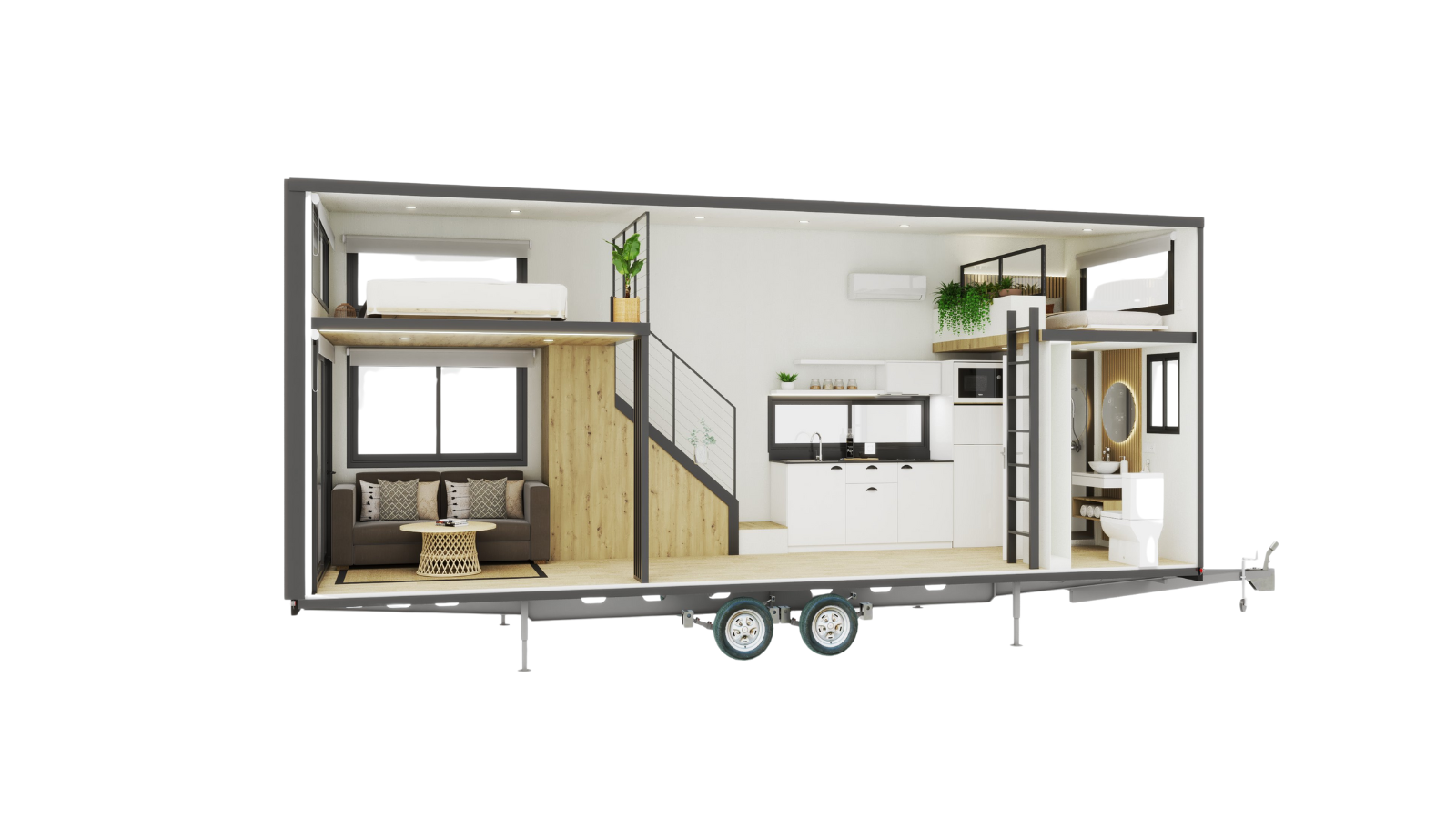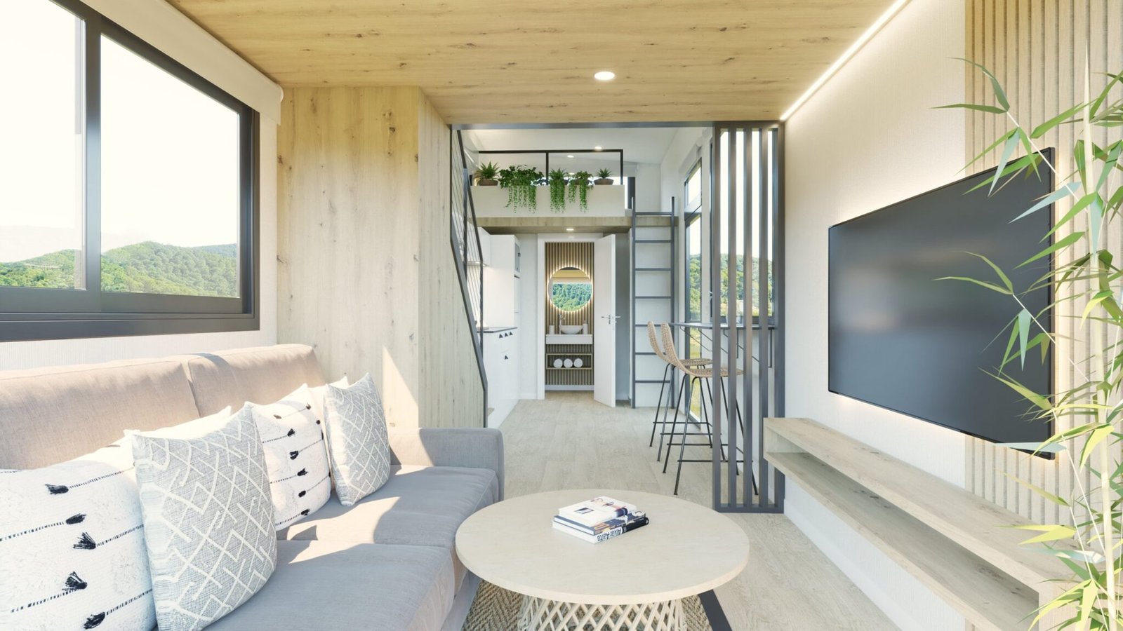 Gracias a su diseño arquitectónico en altura, esta mobil home compacta aprovecha cada metro cuadrado sin renunciar a la comodidad ni a la movilidad.