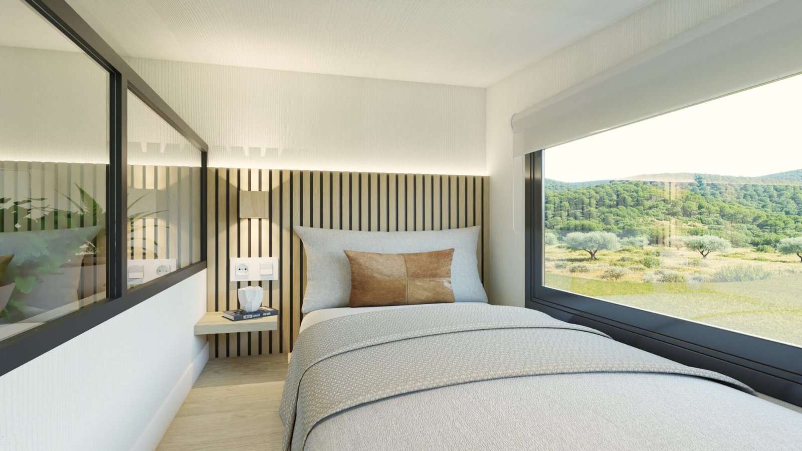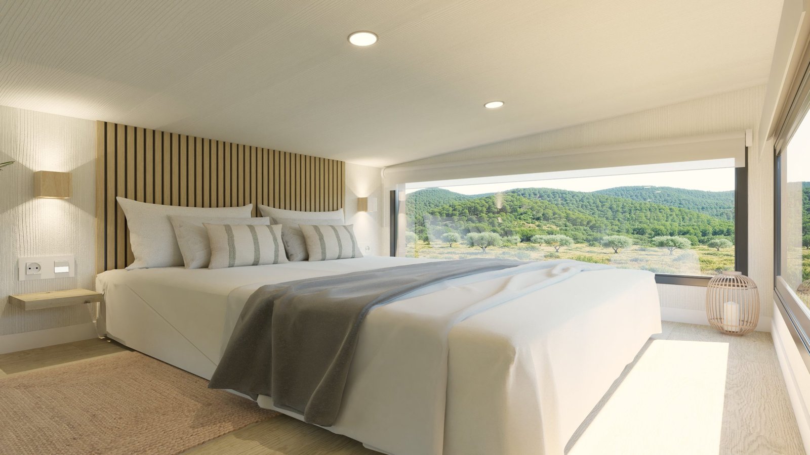 Cada detalle de esta tiny house para alquiler vacacional ha sido pensado para ofrecer una experiencia contemporánea y equilibrada, cuidando tanto la estética como la funcionalidad. Los materiales, textiles, griferías y soluciones de almacenaje reflejan un alto estándar de calidad y durabilidad.
