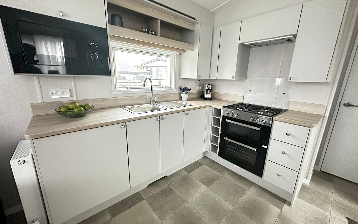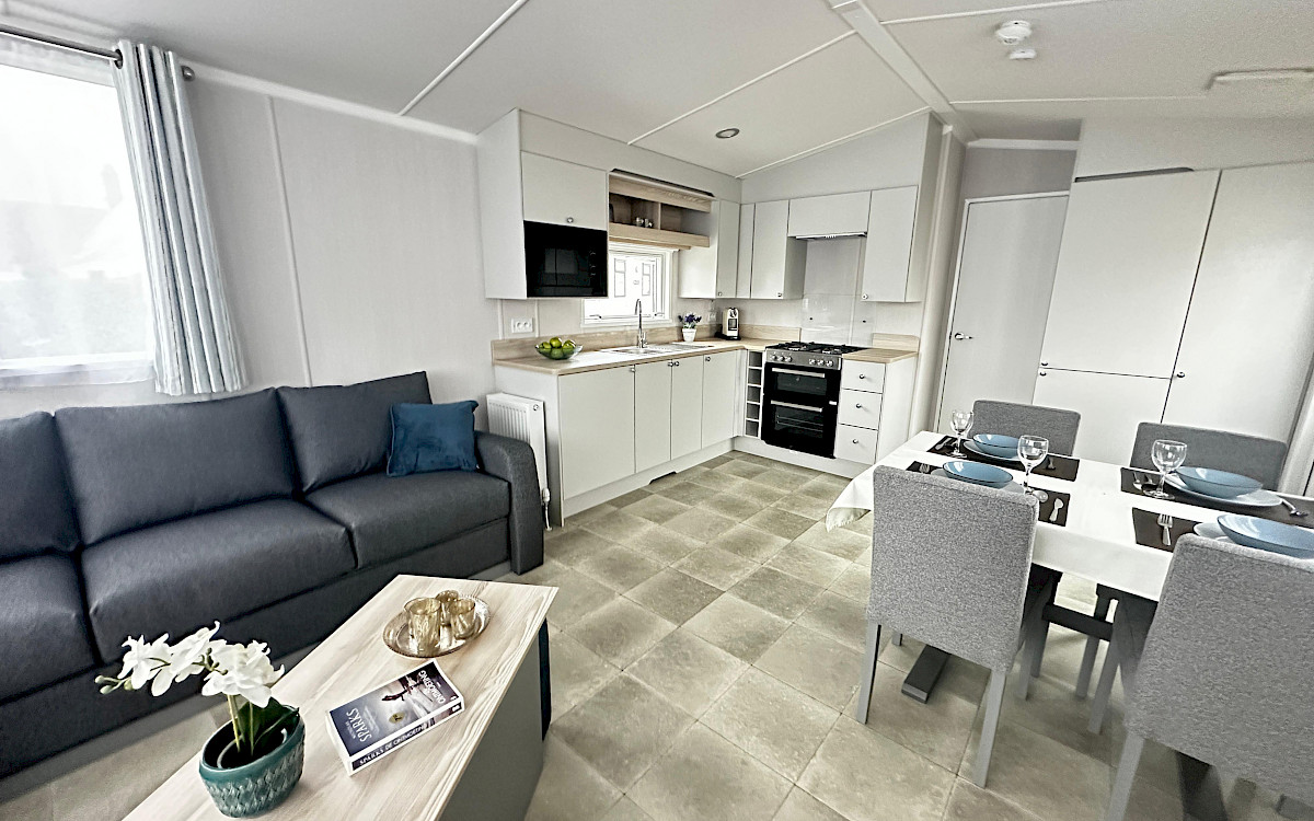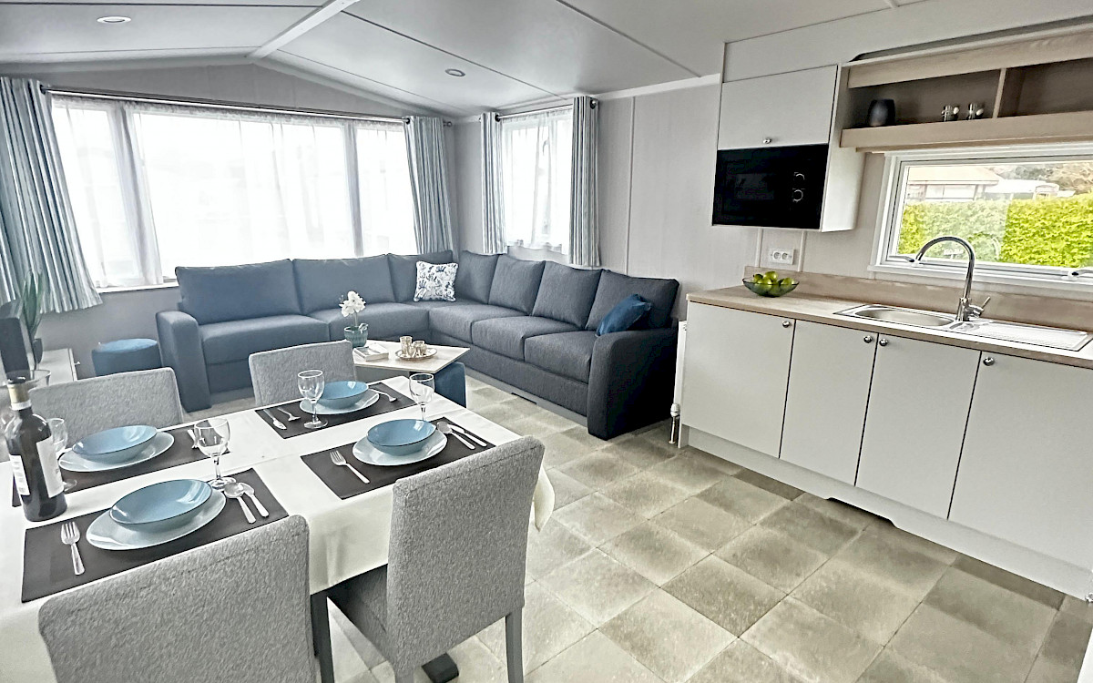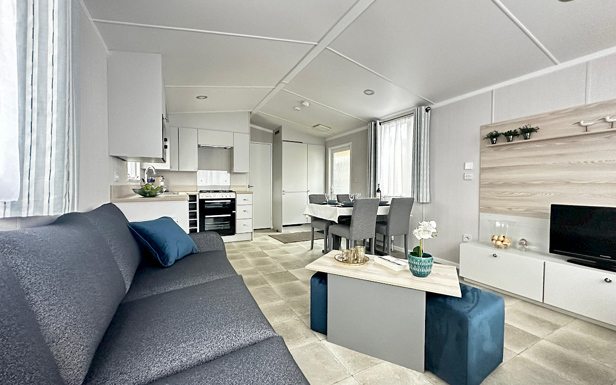 Tanto si es un entusiasta de las vacaciones que busca su propia residencia de ocio como si es propietario de un camping o parque vacacional y busca ofrecer lo mejor a sus huéspedes, la Swift Loire le ofrece todo lo necesario para disfrutar de su estancia al instante. Esta caravana residencial está completamente amueblada y equipada con muebles modernos, incluyendo un elegante sofá esquinero convertible en cama, una mesa de comedor con cuatro sillas, una mesa de centro, un mueble para el televisor y cortinas. Incluso la cocina está completamente equipada con horno, microondas, frigorífico,placa de gas y extractor de aire . La Loire cuenta con dos dormitorios: uno principal con baño en suite y un segundo dormitorio con dos camas individuales, perfecto para niños o invitados. El baño cuenta con cabina de ducha, inodoro, lavabo y radiador de diseño. Gracias a la calefacción central , la comodidad está garantizada durante todo el año. La Swift Loire es la opción ideal para quienes buscan una caravana residencial totalmente equipada y cómoda , lista para usar y diseñada para el máximo confort y lujo.