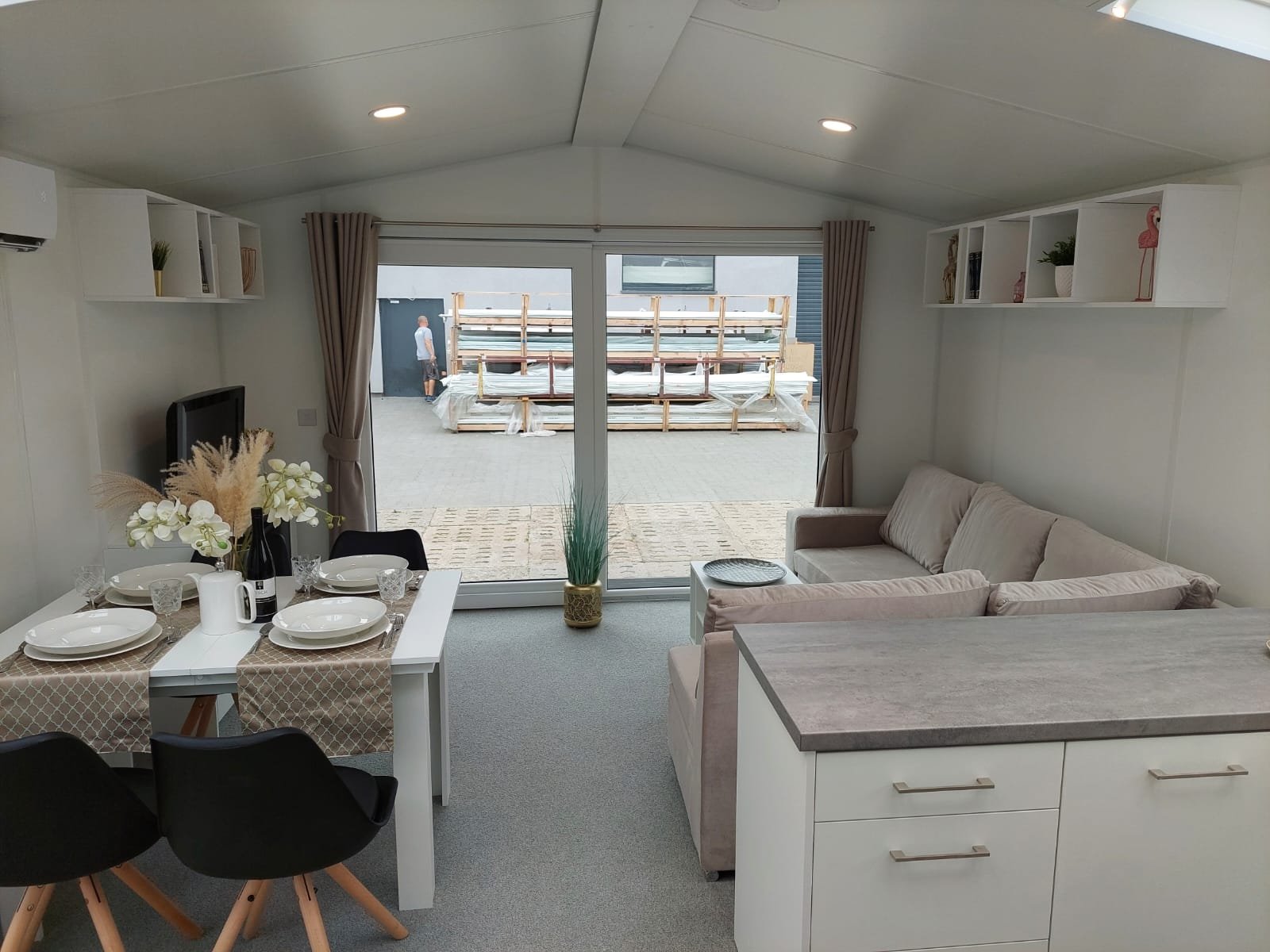 El sistema de ventilación de paredes y techo de Capri elimina eficazmente la humedad, manteniendo un ambiente seco y agradable. Con perfiles de cinco cámaras y acristalamiento de doble seguridad, las ventanas y puertas ofrecen mayor seguridad y eficiencia energética. El interior está revestido con paneles de yeso impermeables y antibacterianos, lo que garantiza un fácil mantenimiento y una apariencia renovada.
