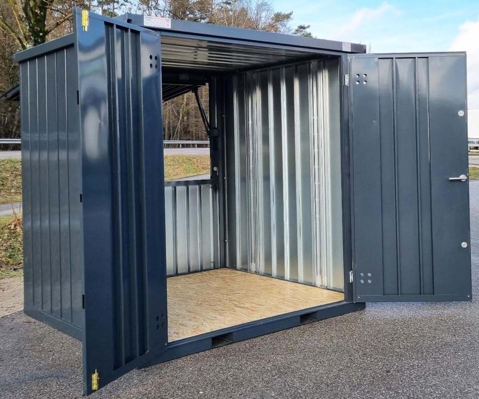 Esto permite que el contenedor sea completamente móvil si es necesario y se pueda levantar con una carretilla elevadora o una grúa, incluso con inventario dentro.