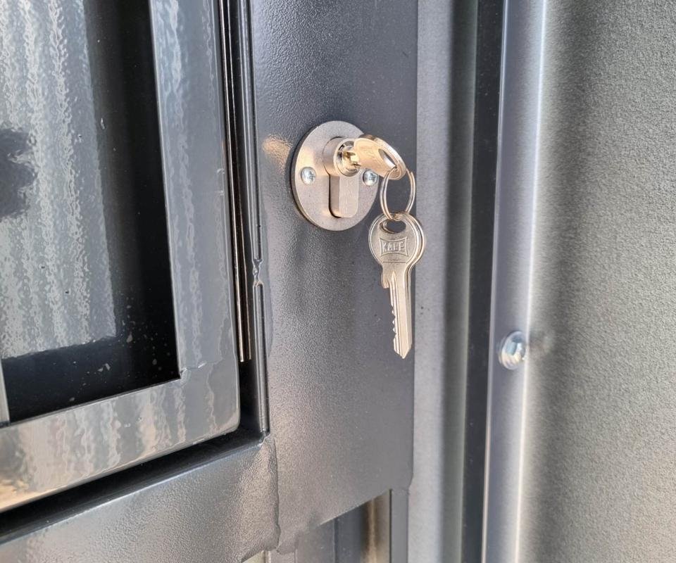 La trampilla de venta del contenedor está asegurada con dos cerraduras de cilindro a cada lado.