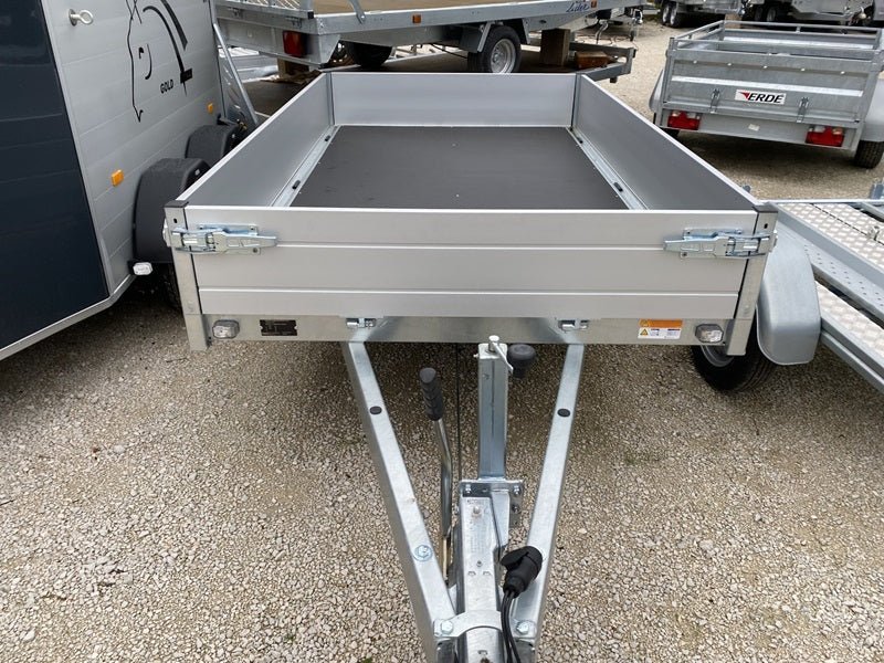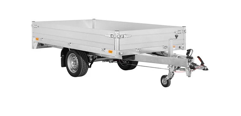 Sus laterales de aluminio de doble pared (30 cm) son completamente desmontables, lo que permite una carga y descarga rápida y convierte el remolque en una plataforma abierta para transportar objetos voluminosos.