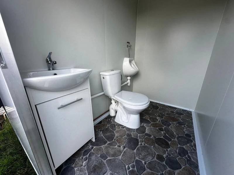El remolque está dividido en dos compartimentos, para hombres y mujeres. El área de hombres incluye un inodoro, un urinario y un lavabo con mueble, mientras que el de mujeres dispone de un inodoro y un lavabo. La estructura, fabricada con paneles sándwich de 40 mm de espuma, garantiza un excelente aislamiento. Además,cuenta con una instalación eléctrica completa y un convertidor de voltaje para un funcionamiento autónomo.